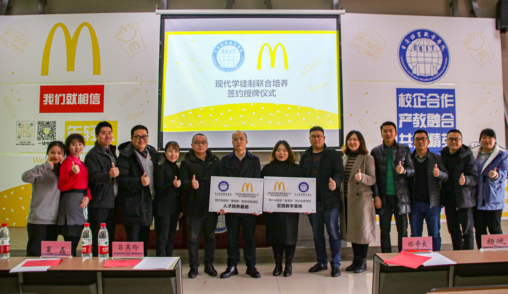12月8日上午,我院與重慶麥當(dāng)勞校企合作簽約揭牌儀式在勤學(xué)廳舉行。