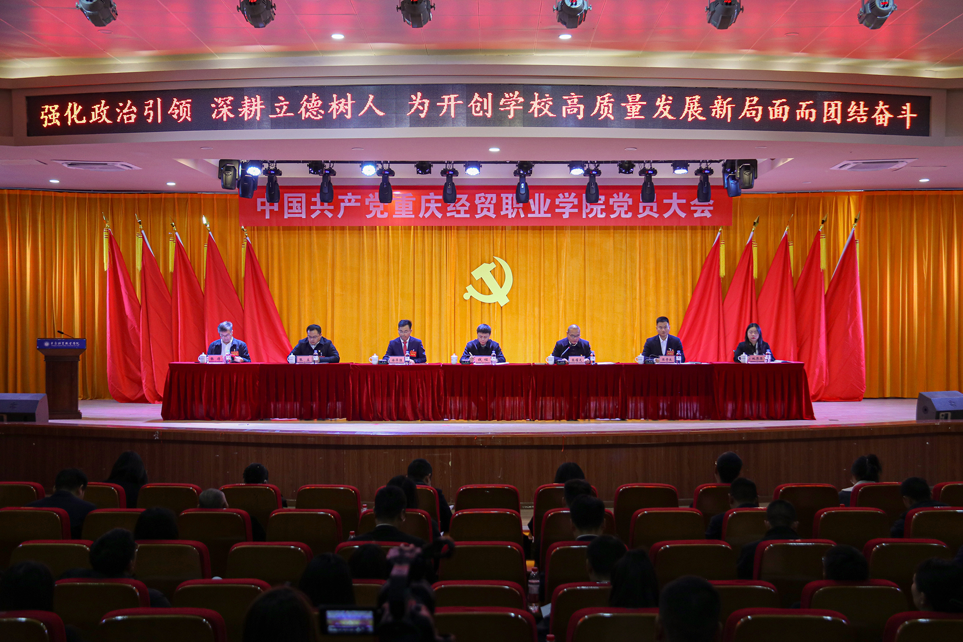 12月10日,中國共產(chǎn)黨重慶經(jīng)貿(mào)職業(yè)學(xué)院黨員大會在學(xué)校博學(xué)廳隆重召開。